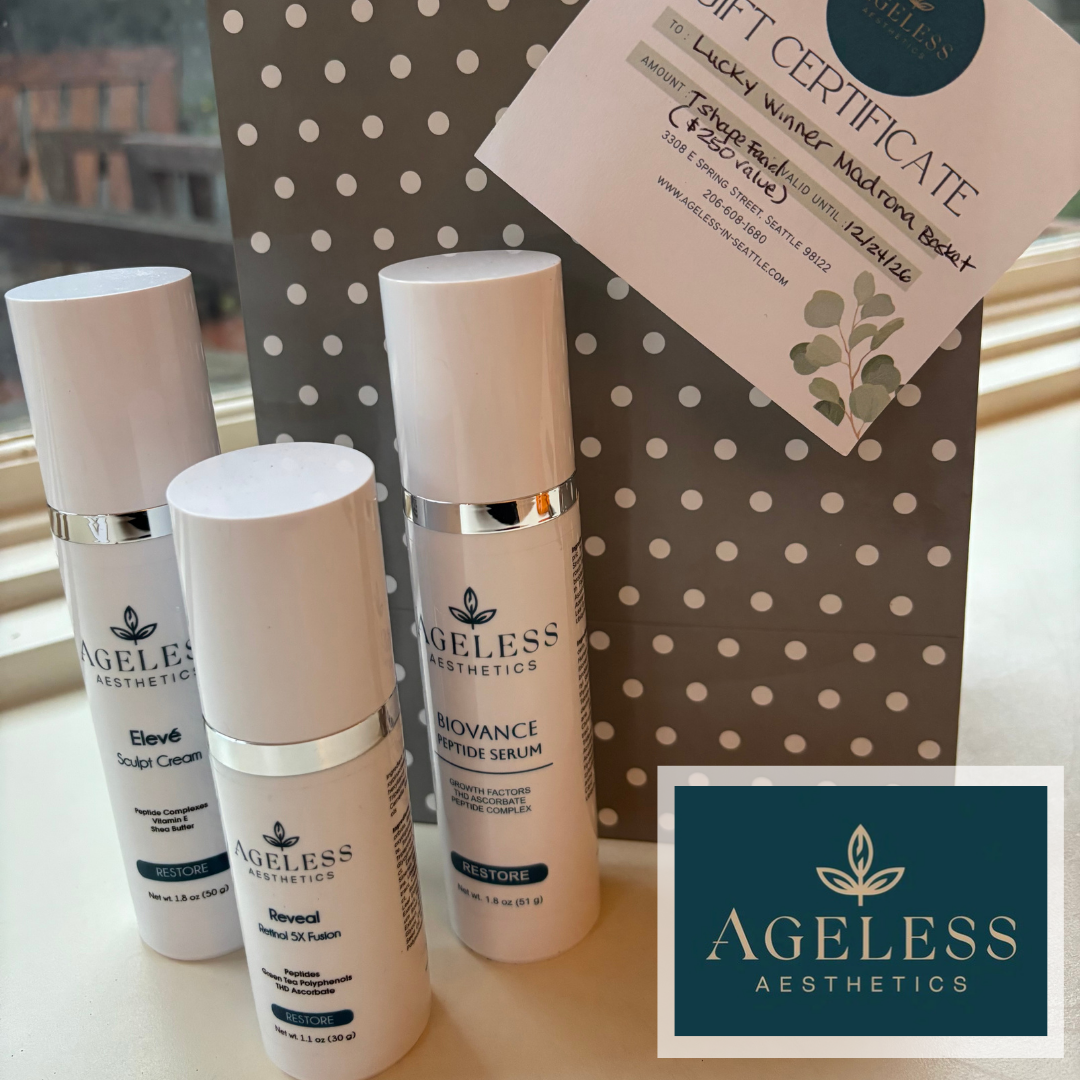 •Ageless Aesthetics – T Shape Facial, Ageless Aesthetics Signature Face & Neck Lift Product Package (Biovance Peptide Complex, Reveal Retinol Fusion, & Elevé antigravity sculpting cream ($580 Value)