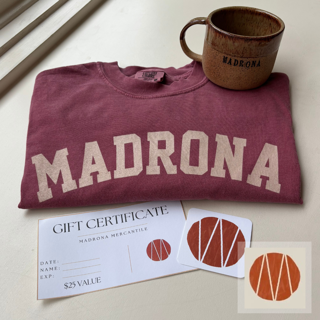 •Madrona Mercantile– Madrona T-shirt, Madrona mug, + $25 gift card ($90 Value)