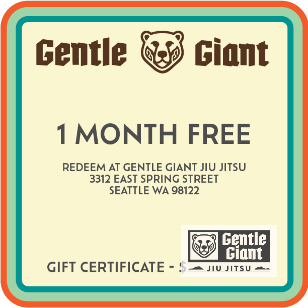 •Gentle Giant Jiu Jitsu– One month membership ($200 Value)