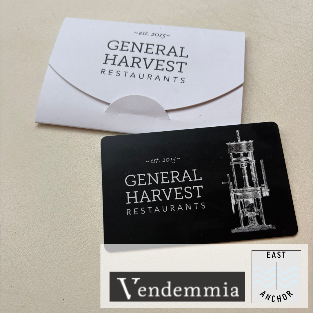 •General Harvest Restaurants– $50 Gift Certificate for use at Either Vendemmia or East Anchor