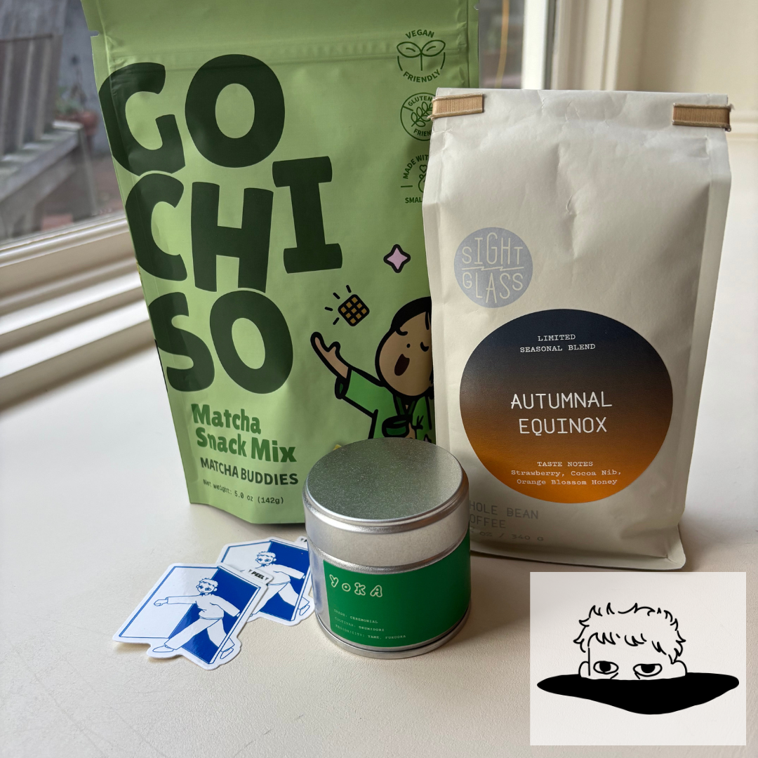 •YokaTea – 1 x Matcha Tin, 1 x Retail Coffee Bag, 1 Gochiso Snack Pouch ($75 Value)