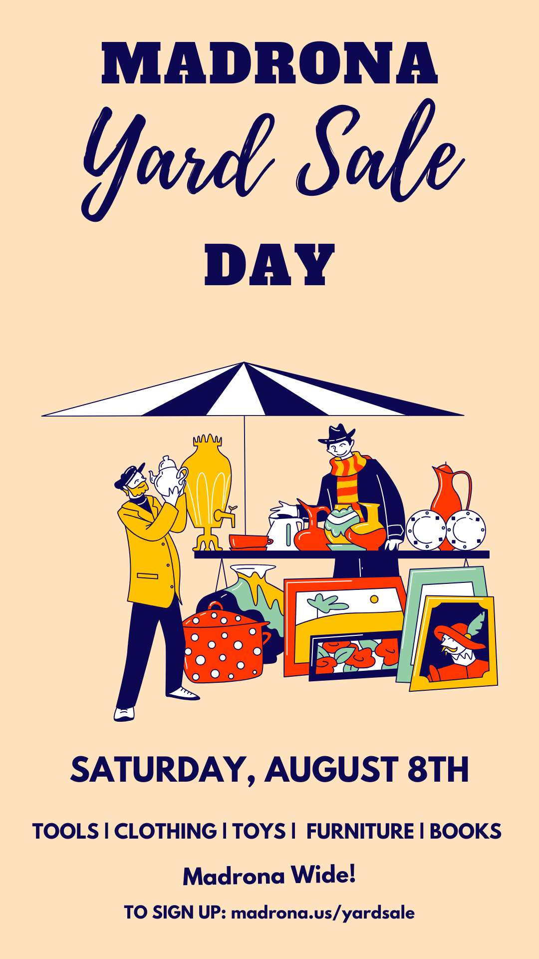 Join us for our 2026 Community Yard Sale on Saturday, August 8th, 2026, from 9:00 AM–2:00 PM.